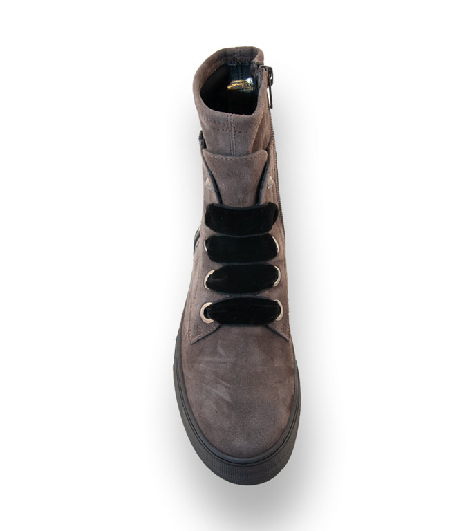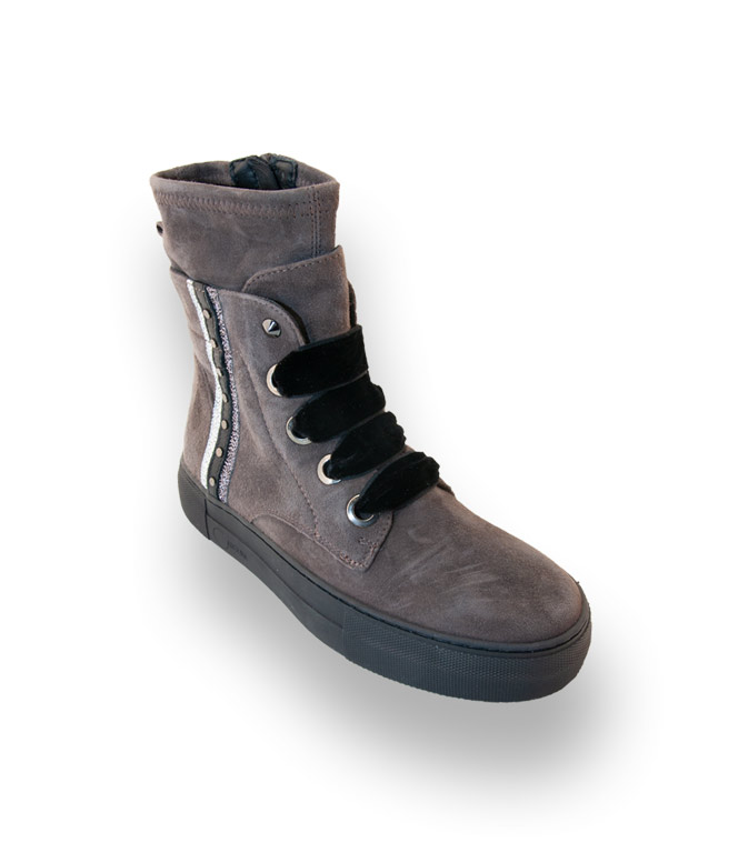 Donna Carolina gibt dem klassischen grauen Schnürstiefel ein neues Gesicht.