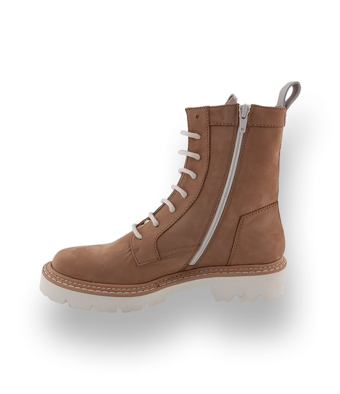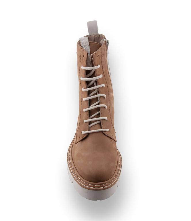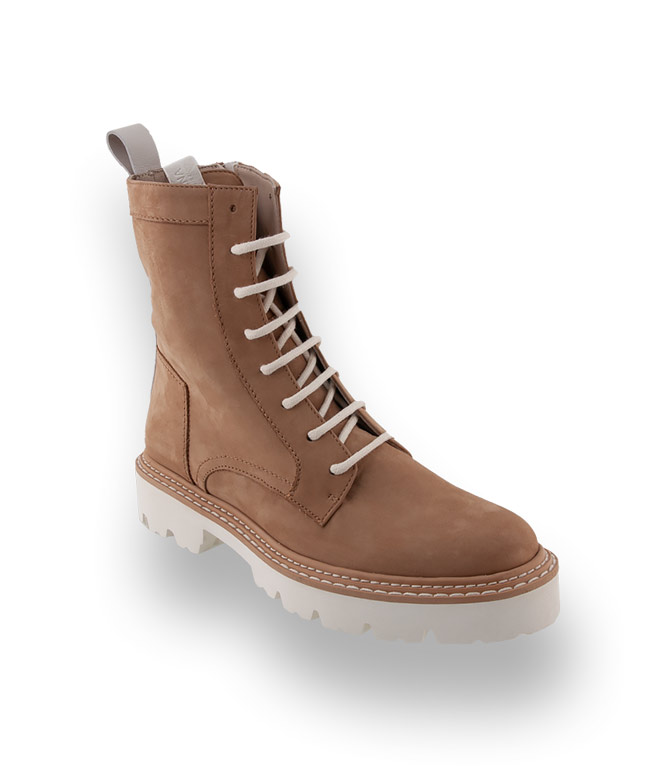 Utility - Die Cargohose das Hero-Piece mit hohem Bund und Combat Boots von dem italienischen Label Donna Carolina im naturfarben Nubukleder schafft Spannung in den Styles. Eine besonders leichte Microsohle mit Profil und ein hochwertiges Lederfutter unterstützen den Komfort. Ein Reißverschluss beschleunigt den Einstieg. Wollweiße Schnürsenkel und ein heller Lederstreifen an der Fersenpartie sind frische Akzente und ergänzen den außergewöhnlichen Style.