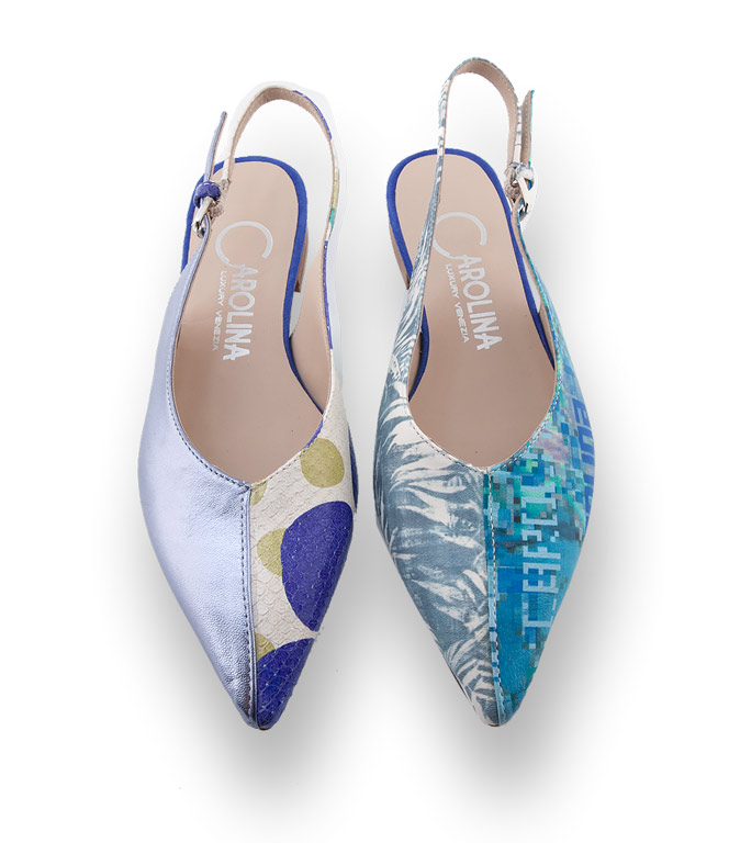 Donna Carolina mixt Farben und Prints und es entstehen außergewöhnliche Farb- und Musterspiele. Extrem energiegeladen und fernab von Normalität. Ein Eyecatcher der sicher ihre Kreativität weckt. Das italienische Label Donna Carolina verwendet hochwertige Materialien in bester Verarbeitung. Slingback sind ideale Begleiter und prägen ihren Individuellen Style.