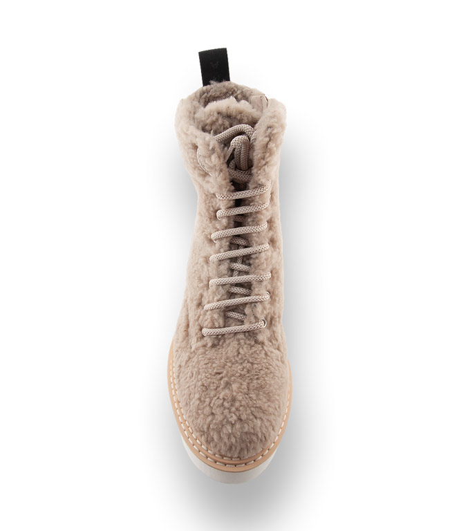 Schnürstiefelette von Donna Carolina in taupefarbenen Teddyfell