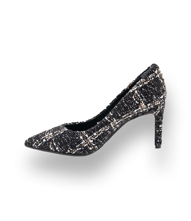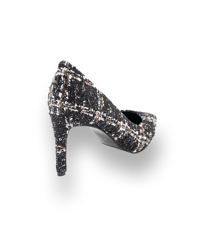 Evaluna begeistert durch außergewöhnliches Material. Karomuster auf schwarz / weißem Textil, spitze Form und ein 8 cm hoher Stilletto Absatz. Ein Highlight auf dem herbstlichen Parkett. Es ist schön eine Frau zu sein. Lederfutter und eine Kunststoffsohle erhöhen den Tragekomfort. Femininer Power verbreitet gute Laune an tristen Tagen und zaubert uns ein Lächeln ins Gesicht.