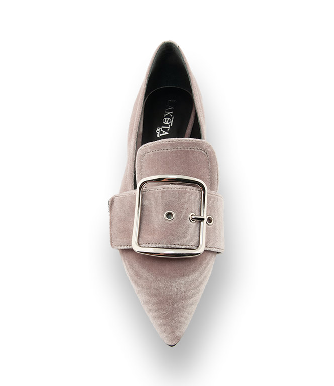 Evaluna Divina spitzer Loafer in nude Samt mit Schnalle