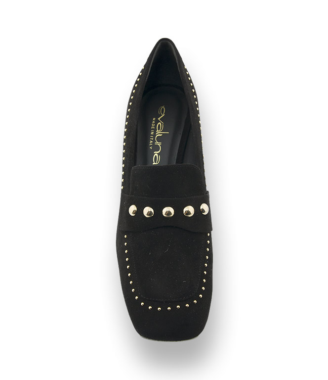 Evaluna Divina Hochfrontpumps in schwarz velours mit goldfarbenen Nieten
