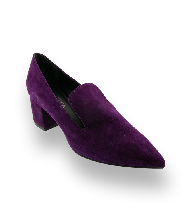 Evaluna Divina spitzer Hochfrontpumps in viola velours mit Lasche