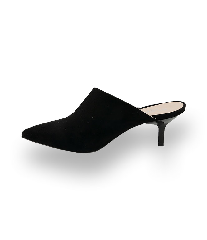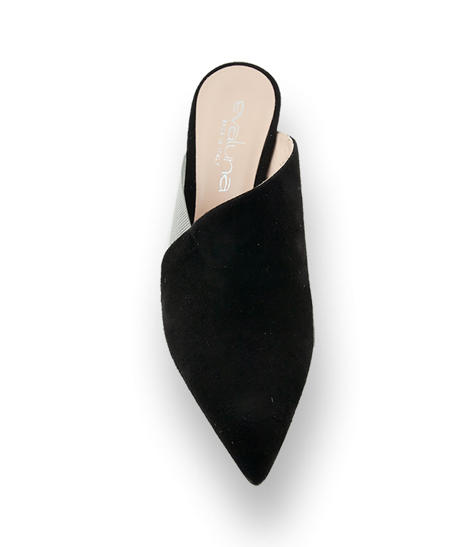 Die spitze Silhouette und die asymmetrische Form sorgen für Raffinesse. Der kleine, keilförmige Einsatz, aus edlem Vinylmaterial, ist ein weiteres Highlight. Butterweiches Velour und hochwertiges Lederfutter verwöhnt die Füße. Ein eleganter, unempfindlicher Absatz macht tolle Beine. Der Mules passt einfach immer und veredelt ihre Sommeroutfits im Nu.