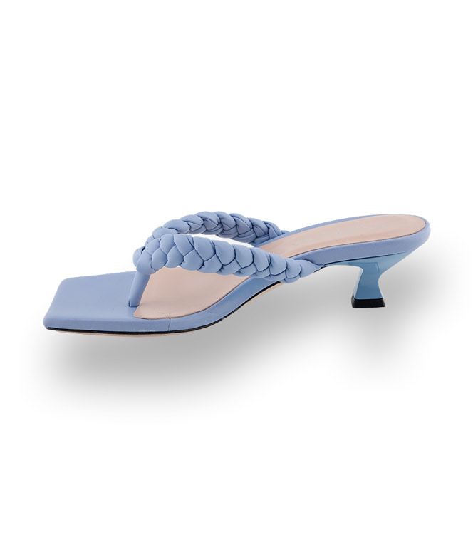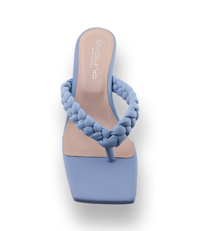 Riemchensandalen - Zehengreifer mit 5cm hohen Absätzen sind die heißesten Schuhtrends für den Sommer und gönnen ihren Füßen viel frische Luft. Die hellblaue Dianette von Evaluna mit geflochtenen Riemchen und den eckigen Zehenkappen ist extrem ladylike. Ein Hype der sich sehen lassen kann. Minimalistischer Sex-Appeal wird salonfähig. Auserlesene Materialien, Lederfutter und Lederlaufsohle versprechen hohen Komfort. Eine schöne Alternative zu Flats gehören in einen gut sortierten Schuhschrank.