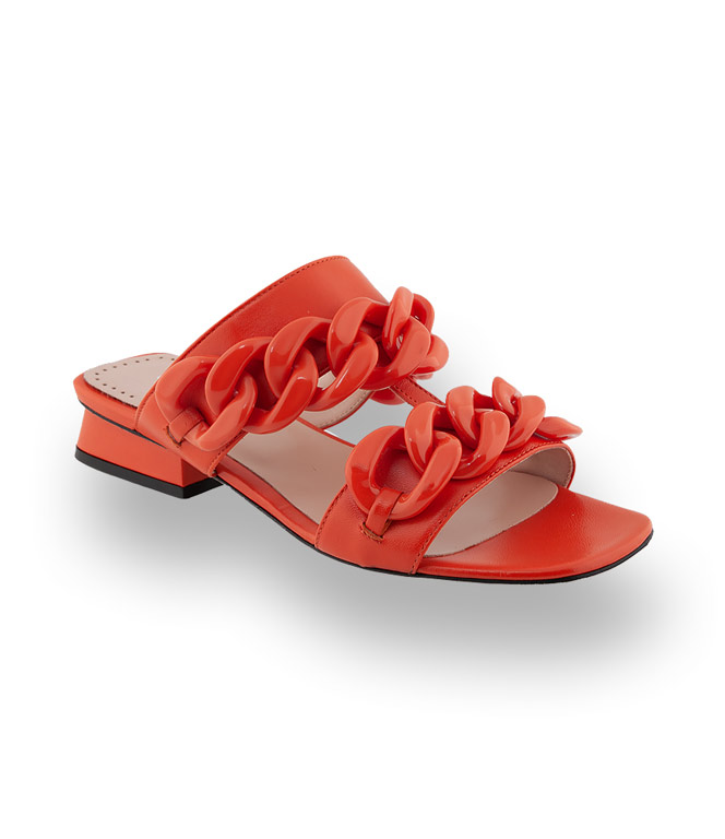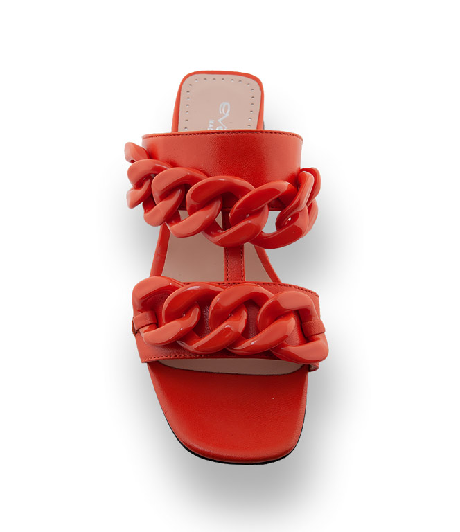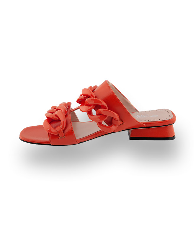 Evaluna Divina Pantolette zwei Riemen mit Schmuckkette in orange