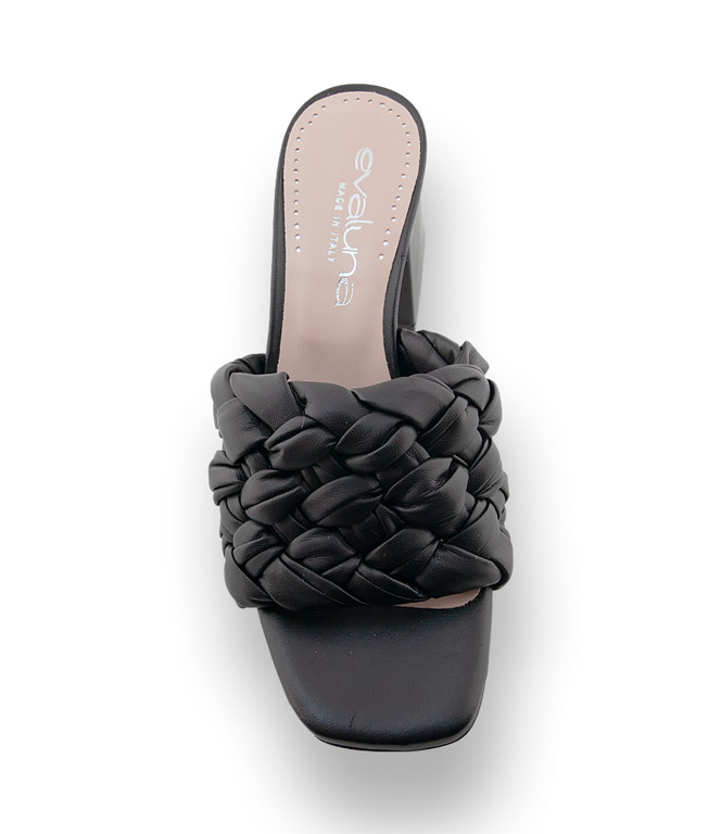 Evaluna Divina Pantolette schwarz Flechtbandage