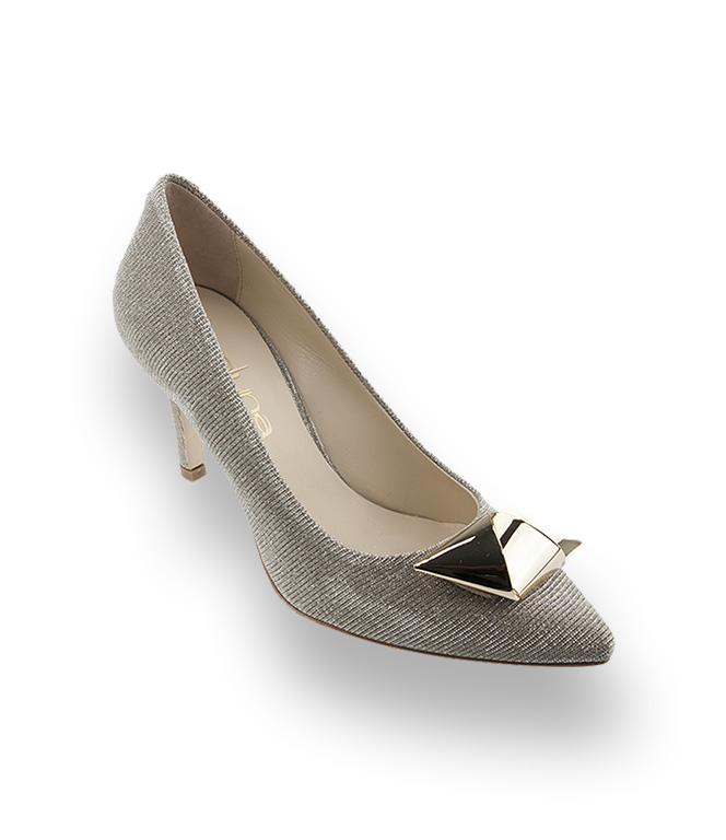 "Klassischer, eleganter Abendschuh mit ausgefallener Brosche von Evaluna."