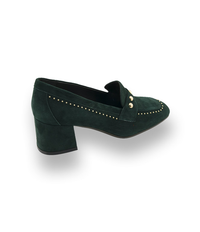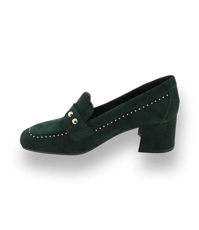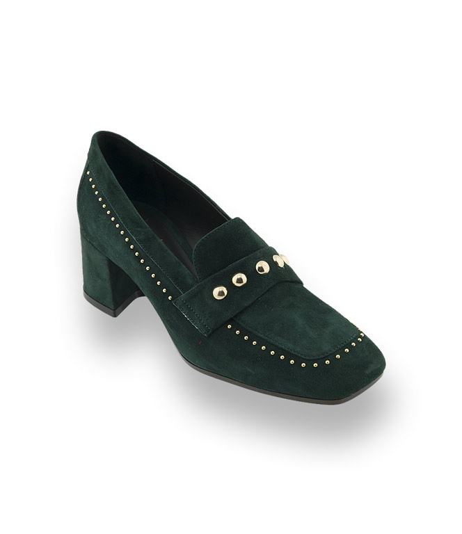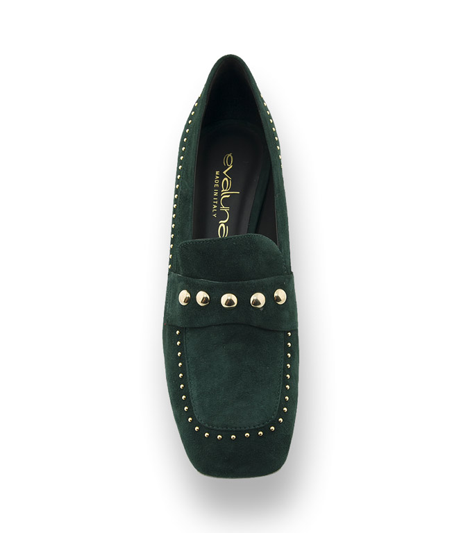 Evaluna Divina Hochfrontpumps in grün velours mit goldfarbenen Nieten