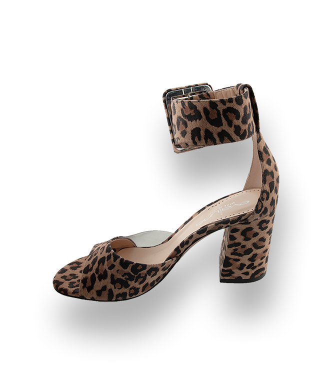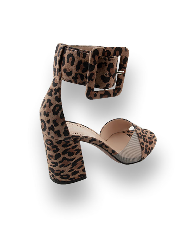 Evaluna macht Träume wahr. Die traumhafte Sandalette in extravagantem Leoprint hat so einiges zu bieten. Die asymmetrische Bandage, mit dem keilförmigen Einsatz aus edlem Pleximaterial sorgt für Furore. Die geschlossene Ferse wird mit einem breiten Fesselriemen und imposanter Schließe in Szene gesetzt. Die futuristische Sandalette ruht auf einem pfiffigen Blockabsatz. Lederfutter und Lederlaufsohle begeistern auch an heißen Sommertagen. Investieren sie in dieses luxuriöse It-Piece.