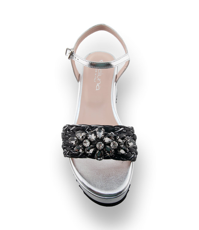 Evaluna Divina Sandalette Wedges in silberfarben mit Strasschmuck