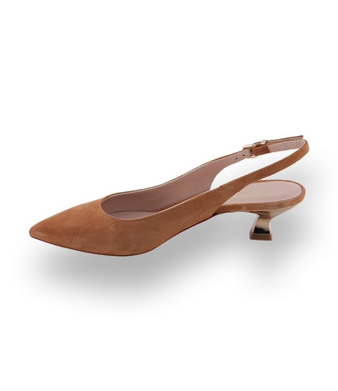 Feminine Slingbacks sind begehrte Alleskönner und lassen sich hervorragend integrieren. Durch einen unempfindlichen, goldfarbenen Kunststoffabsatz bekommt der spitze Sling von Evaluna seine individuelle Note. Aus hochwertigem braunem Veloursleder, Lederfutter und einer Lederlaufsohle lässt es sich auch bei hohen Temperaturen auf angenehmste Weise verweilen. Tauchen Sie ein in die Vielfalt der Mode und der Klassiker von EVALUNA findet stets den passenden Einsatz.