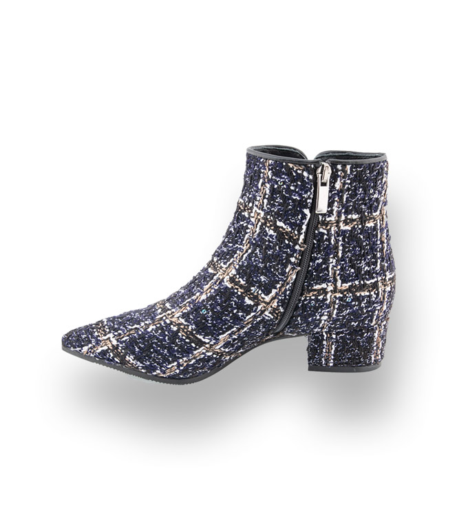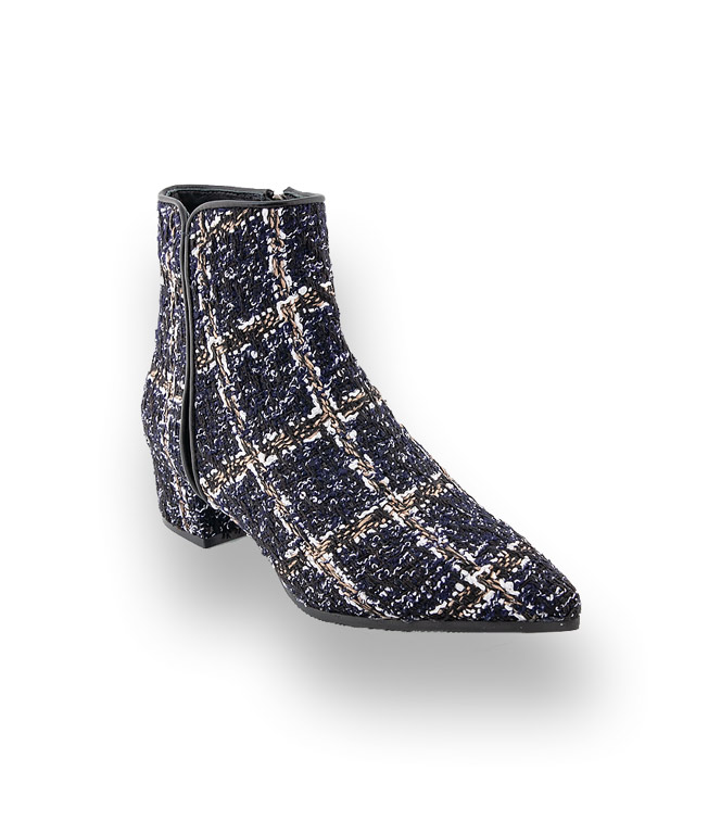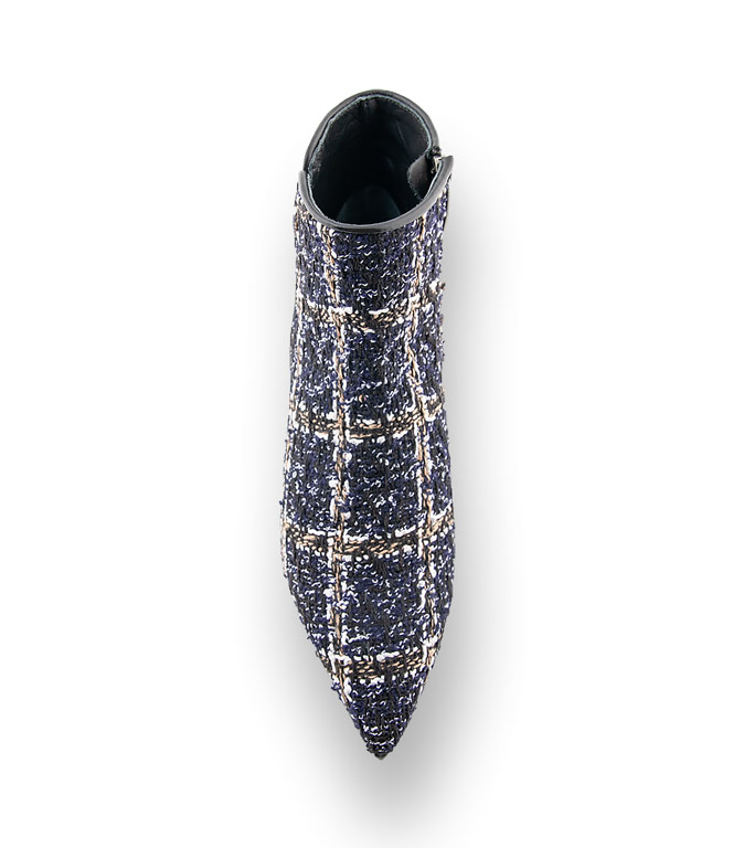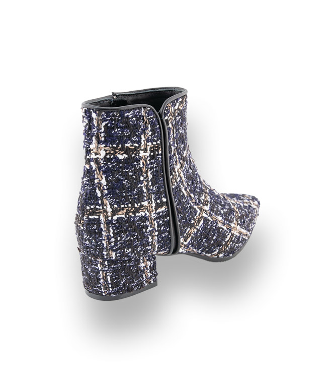 Evaluna Divina Stiefelette in blau weiß Karo Tweedstoff