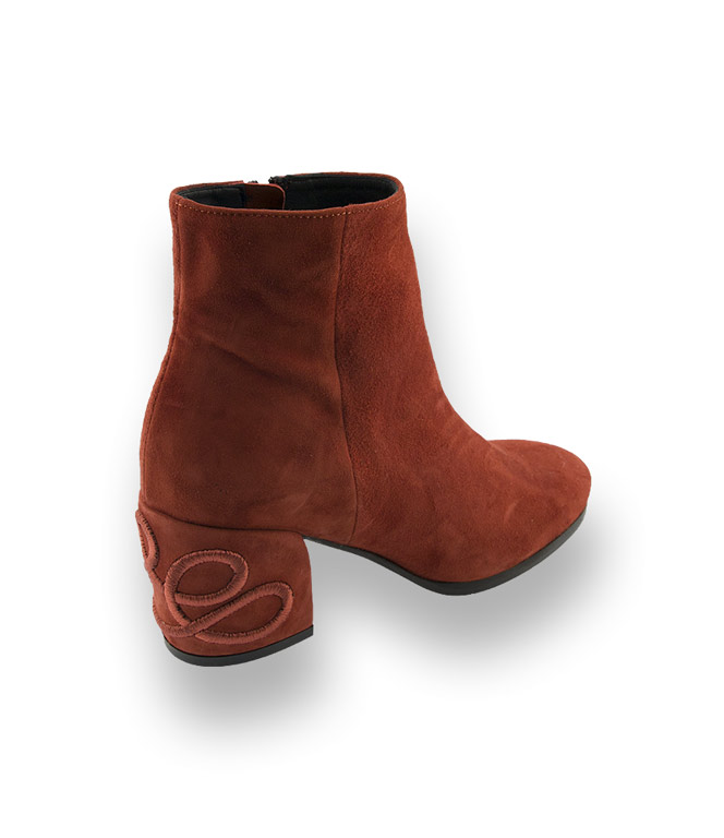 Evaluna Divina Ankleboots in rost velours mit Stickerei am Absatz