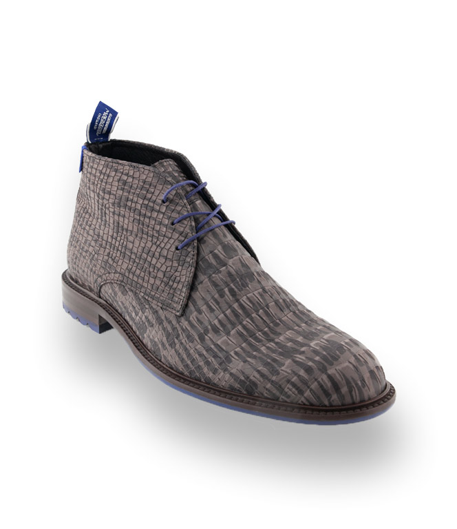 Floris van Bommel Schnürboots in grau Krokoprägung