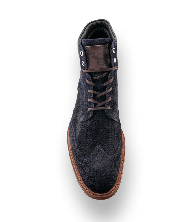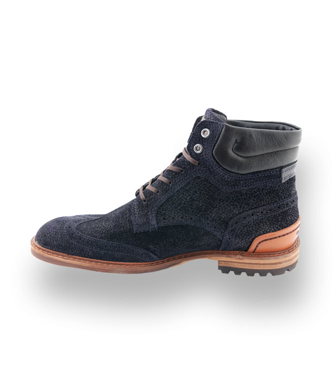 Die trendige Schnürstiefelette aus blau genarbtem Nubuk wird sie begeistern.