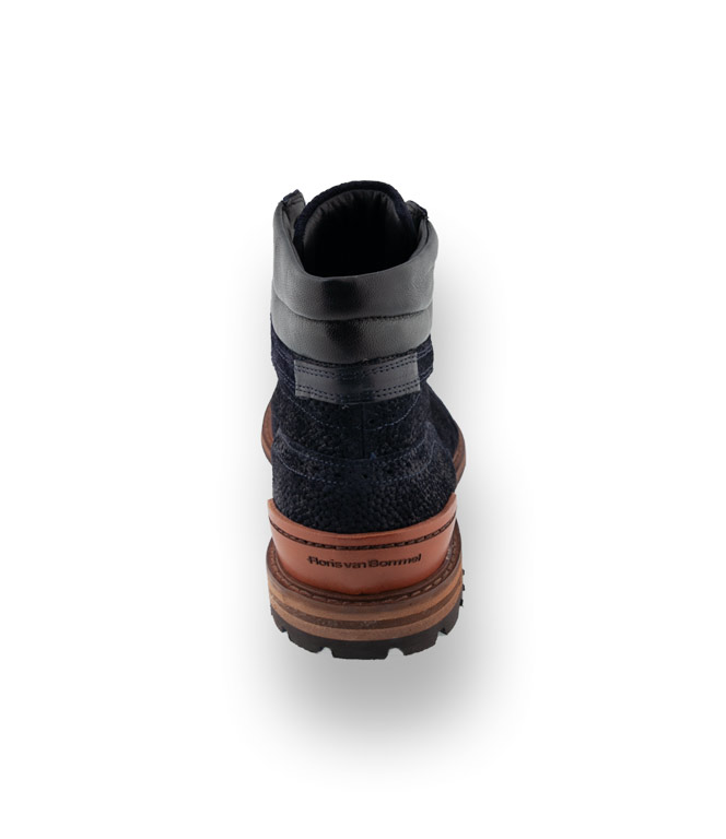 Die Flügelkappe und der gepolsterte Glattleder-Rand unterstreichen den edlen Look. Die durchgenähte Laufsohle mit Profil wird durch den sichtbaren hellbraunen Rahmen besonders hervorgehoben. Braune Akzente unterstreichen das erfrischende Design. Die stylische Derby-Stiefelette passt zu jedem Outfit - Floris van Bommel rückt ihre Füße immer ins rechte Licht.