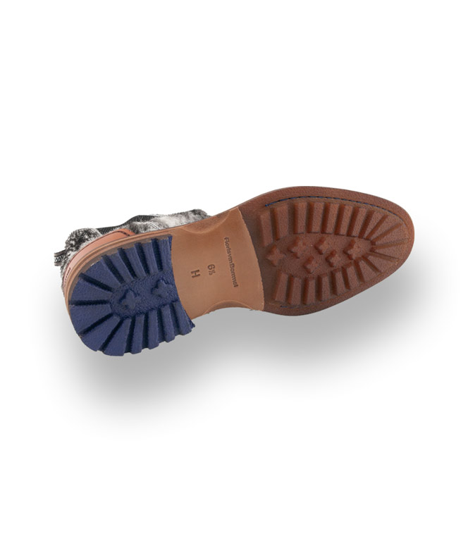 Pflegeleichtes Kuhfell, mit einem schwarz/weißem Hahnentrittprint sorgt für Aufsehen. Weiches Lederfutter, ein gepolsterter Abschluß im Schaft, sowie die austauschbare Ledersohle, versprechen höchsten Komfort. Akzente in braunem Velour und das Logo in hellem braun im Fersenbereich unterstreichen das coole Design. Die durchgenähte Laufsohle, mit Profil wird durch den Zierrahmen besonders hervorgehoben.