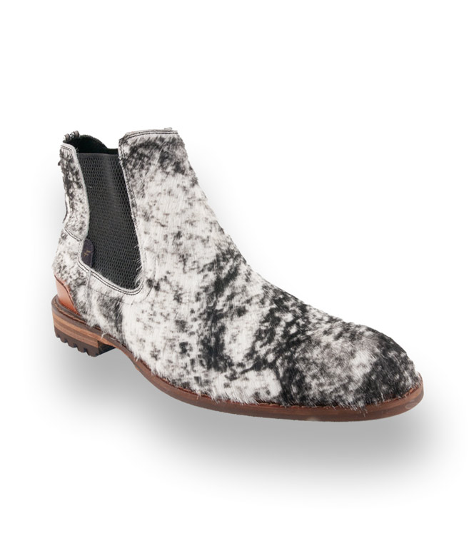 Floris van Bommel Chelseaboots in schwarz weiß Felloptik