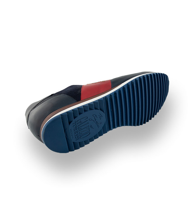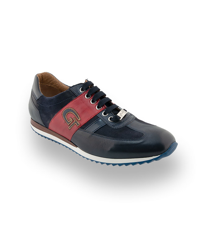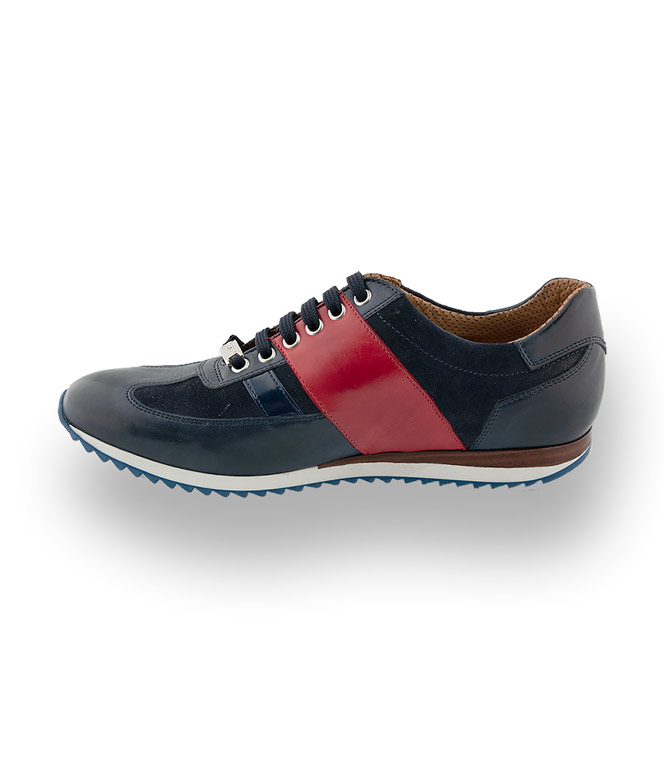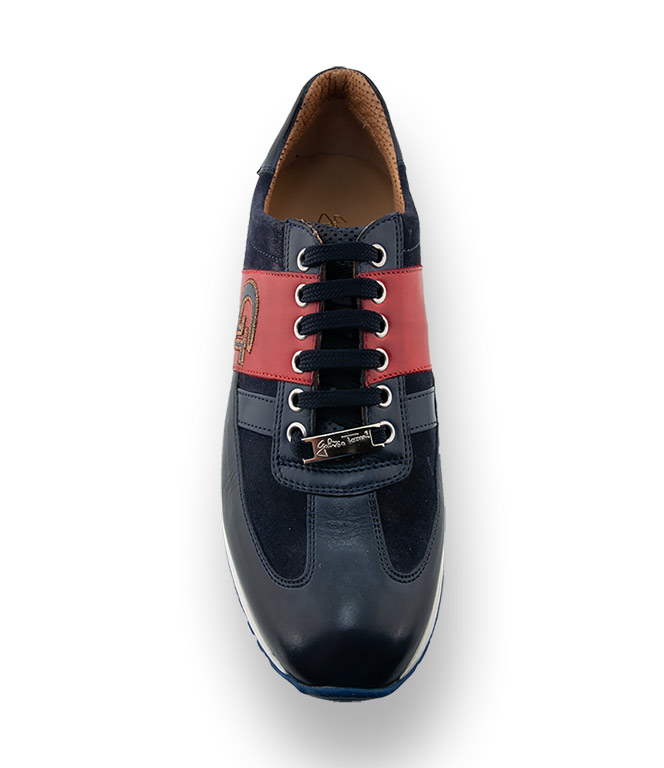 Der traditionelle Edelsneaker von Galizio Torresi in blau mit rotem Streifen