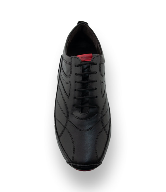 Ein heißer Sneaker-Trend bekommt eine Frischzellenkur. Galizio Torresi setzt mit diesem Modell den Fußballschuh in den Fokus. Aus softem schwarzem Kalbsleder in der Cosy-Machart, dabei werden Futterschaft, Oberschaft und Laufsohle verbunden. Der Schnürer wird dadurch leicht, anschmiegsam und flexibel. Dieser Tragekomfort weckt Begehrlichkeiten und stillt höchste Ansprüche. Lassen Sie sich überzeugen und gehen Sie sportlich in den Sommer.