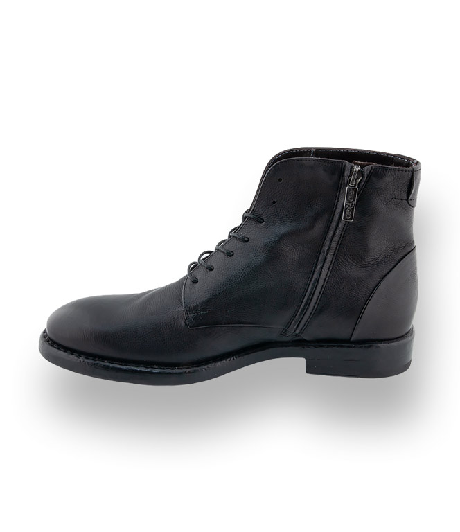 Die schwarze Schnürstiefelette sorgt für einen cleanen Auftritt im jungen Design. Qualitativ höchst anspruchsvoll aus softem Leder und einem hochwertigen Lederfutter verspricht dieses Modell besten Tragekomfort. Eine profilierte Gummisohle schützt vor Nässe und ein Reißverschluss garantiert einen angenehmen Einstieg. Must-have!! Die neuen Stiefeletten im runden Leisten von GIORGIO 1958.
