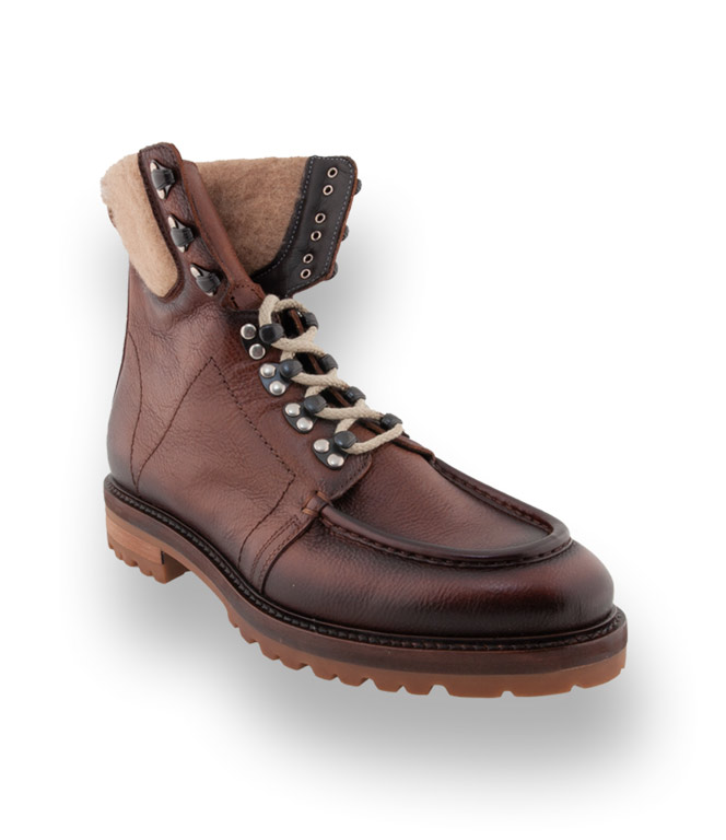 Lässig ins Büro mit den soften Boots von Giorgio1958. Ein Trend zeigt sich allwettertauglich. Aus hochwertigem braunen Kalbsleder. Hingucker-Details wie originelle Haken und Filzabschluss vervollständigen das coole Design. Profilierte Gummisohle, Lederfutter und ein besonders weiches Oberleder machen dieses sehr leichte Modell zum begehrten Begleiter.