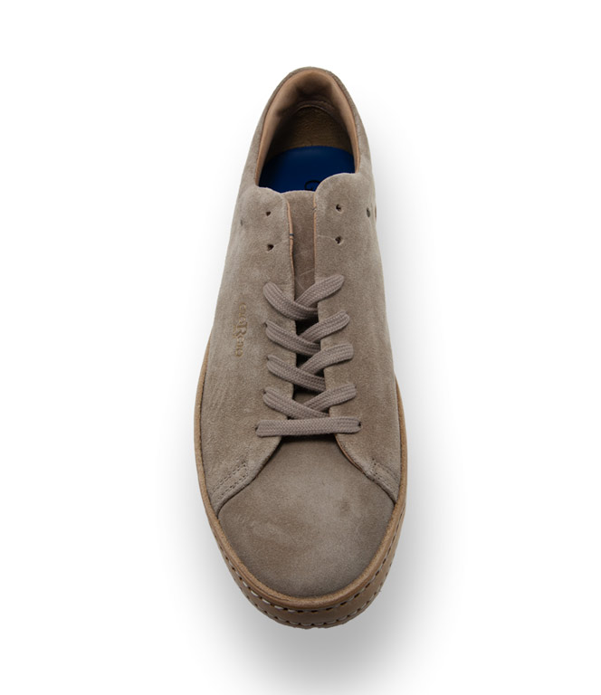 Selbst anspruchsvollste Männer wird dieser Edelsneaker begeistern. Giorgio 1958 setzt auf schlichte Linienführung, hochwertiges Material und beste Verarbeitung. Taupefarbenes Velours und gestanztes Lederfutter lassen keine Wünsche offen. Der gepolsterte Rand und die austauschbare Innensohle garantieren einen angenehmen Tragekomfort. Die durchgenähte Gummisohle ist federleicht. Der farblich abgesetzte, mit beigem Leder überzogene Keil und den markanten Nähten, ist ein weiterer Pluspunkt dieses Modells. Für ihren Casual-Style die perfekte Ergänzung.