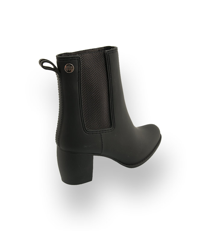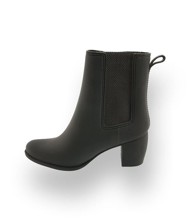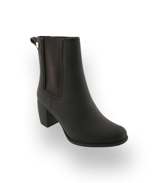 Angesagter Chelsea Boot von Gioseppo. Der schwarze Gummistiefel, mit einem Absatz von 6 cm überzeugt durch viele Details. Das matte Material wird mit Gummieinsätzen in edlem Hahnentritt perfekt ergänzt. Eine rutschsichere Sohle garantiert einen sicheren Stand. Der stylische Boot ist absolut wasserdicht und macht selbst bei Regentagen gute Laune. Zu Rock oder Hose der ideale Begleiter an trüben Tagen.