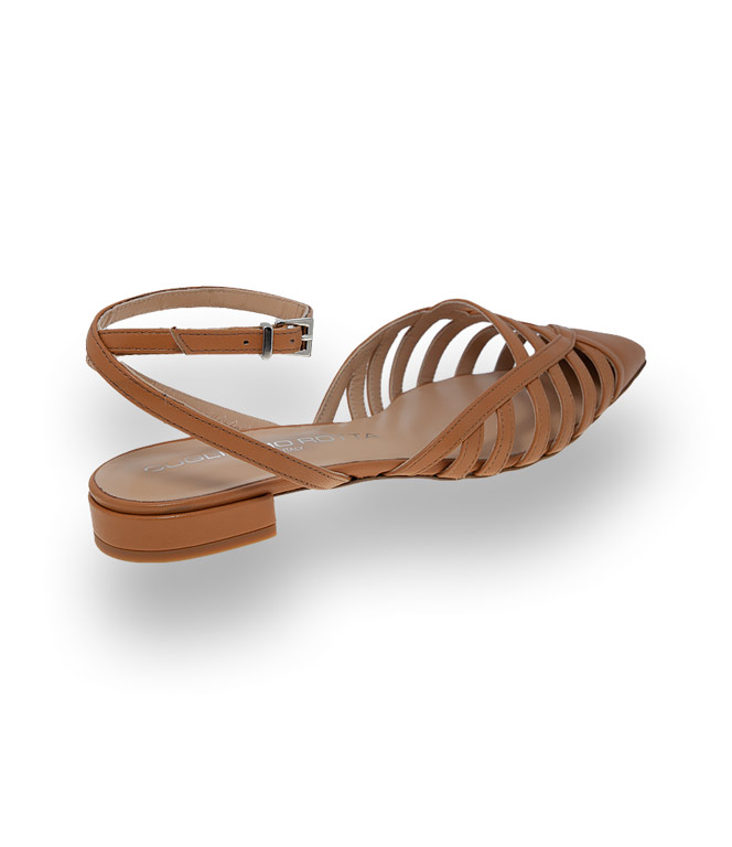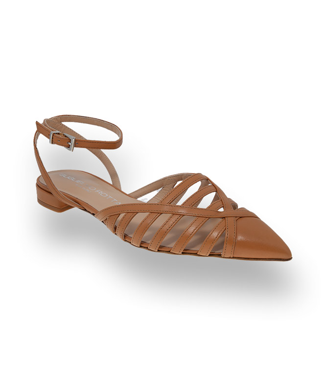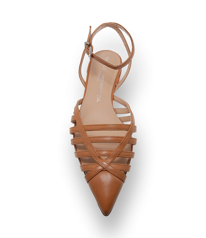 Ein Sling von Guglielmo Rotta der zeitlose Modernität ausstrahlt. Verspielte Riemchenanordung in spitzer Form. Der Flache zeigt sich elegant und ist dennoch alltagstauglich. Erdtöne entpuppen sich als die besten Kombinationspartner und schmeicheln jedes Outfit. Hochwertiges Kalbsleder, Lederfutter und Ledersohle sind Garanten für einen unbeschwerten Sommertag.