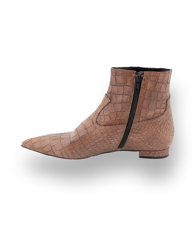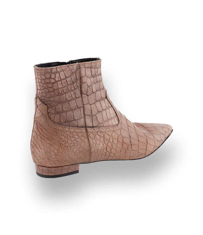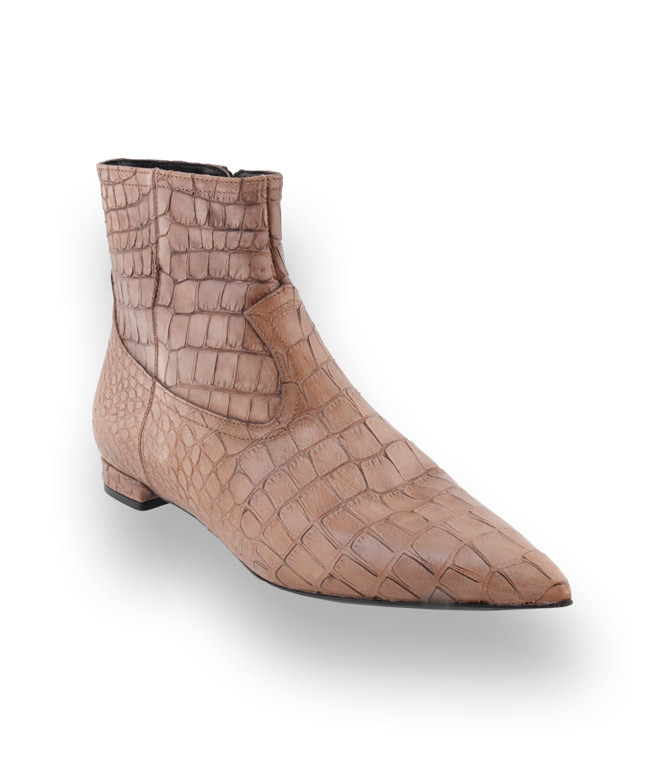 Aus krokogeprägtem Leder in spritzer Form wird zum ultimativen Allroundtalent. Die beigefarbene Stiefelette von Guglielmo Rotta besticht durch Material und Verarbeitung und ist vielseitig und elegant. Clean Chic für Frauen die moderne Klassik lieben. Lederfutter und eine Lederlaufsohle mit rutschsicherem Gummieinsatz verspricht hohen Tragekomfort.