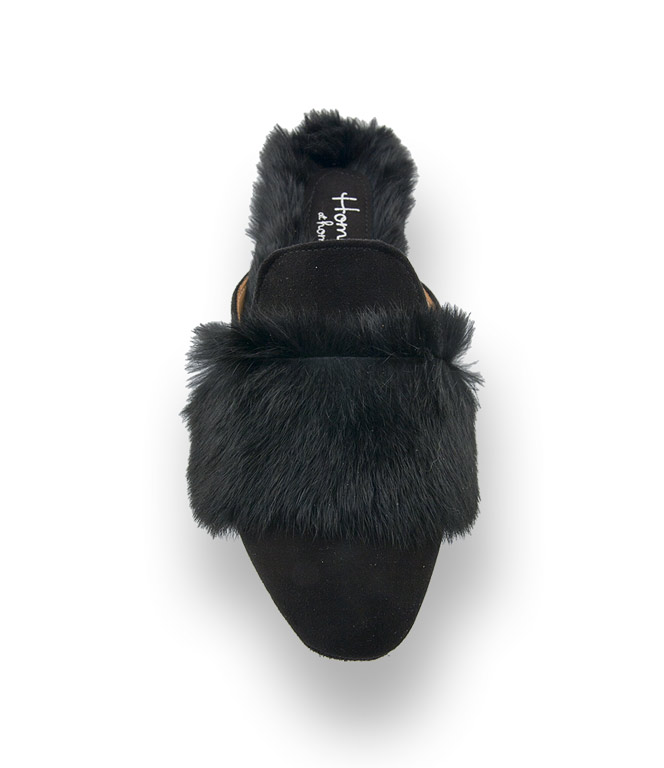 Sie sind auf der Suche nach dem "Geschenk" - dann liegen sie mit der verspielten Pantolette, von Homers at home, goldrichtig. Kuscheliges Hasenfell ziert die ledergefütterte Bandage. Die gepolsterte, gesteppte Decksohle, und die Chromlederlaufsohle, garantieren ein Wohlfühlerlebnis.