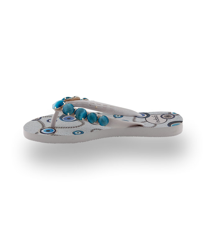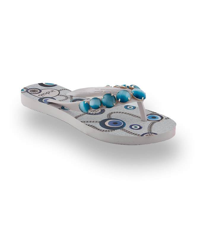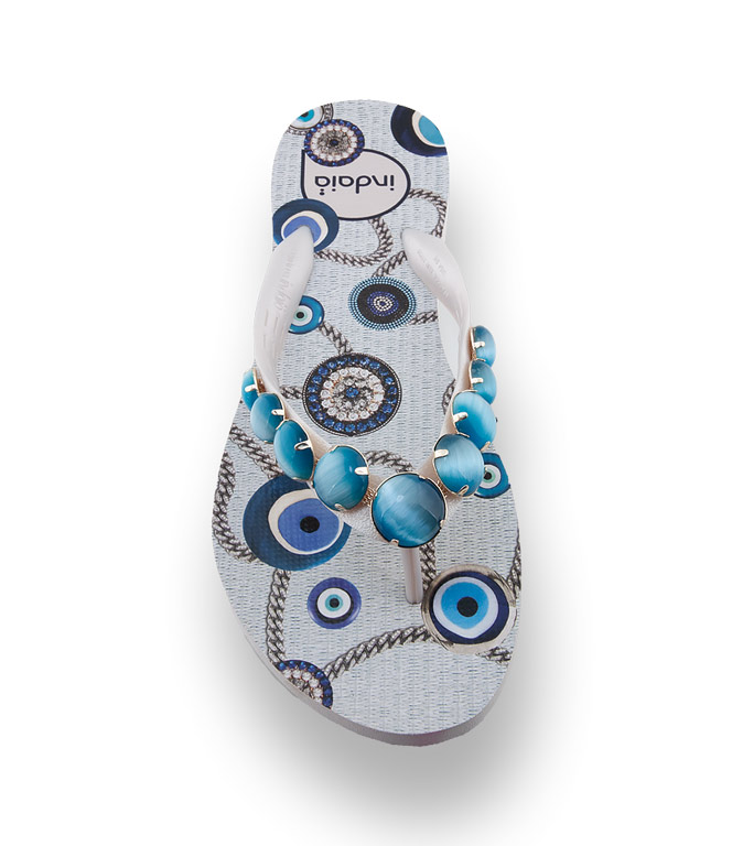 INDAIA- Flipflop in blau mit weiß, große Schmucksteine