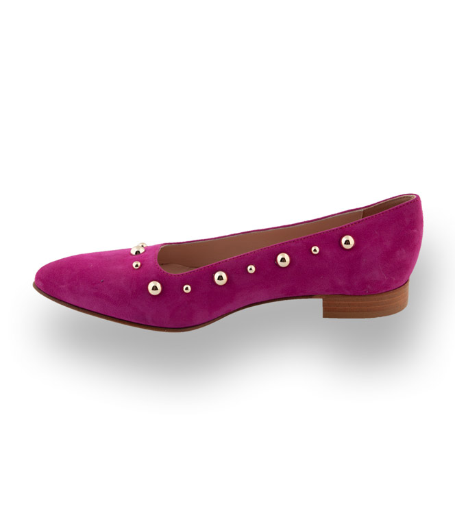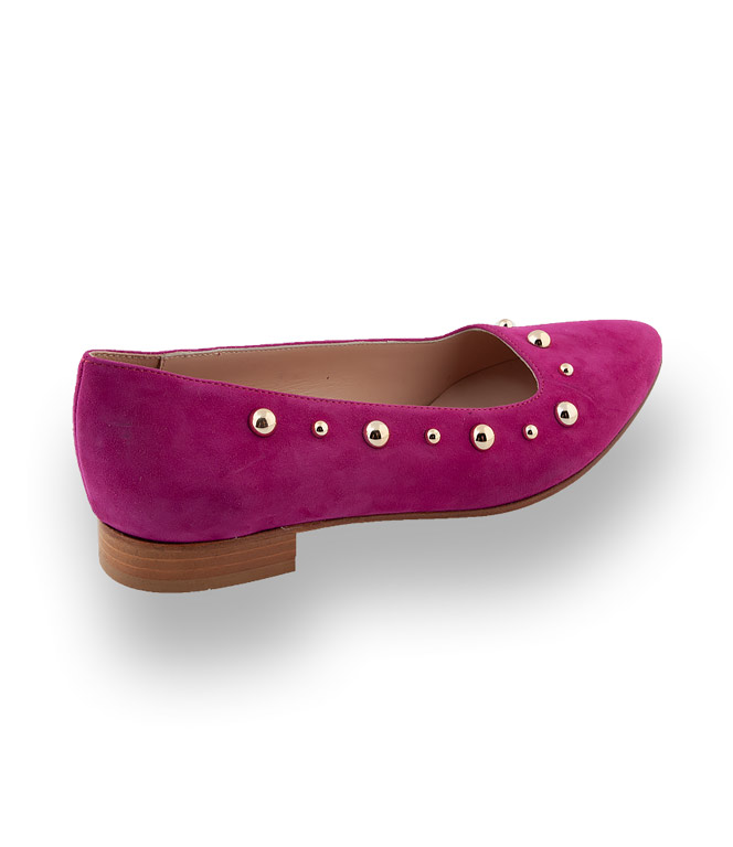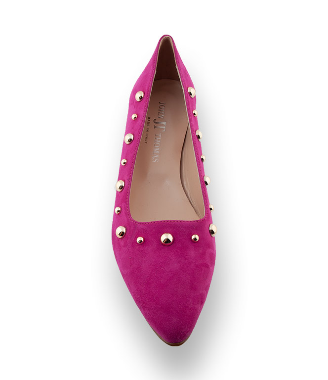 Strahlendes Pink mit goldfarbenen Nieten so zeigt sich der neue Flache von John Thomas. Hochwertig in der Verarbeitung aus Veloursleder mit Lederfutter und Ledersohle. Ein rundum Wohlfühlpaket mit modischen Power. Gehen Sie stilsicher in den Modefrühling.