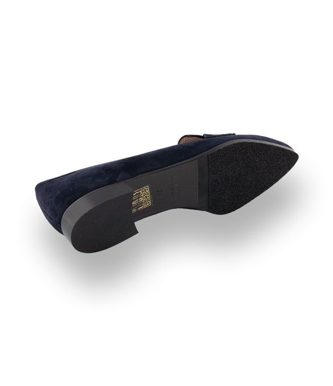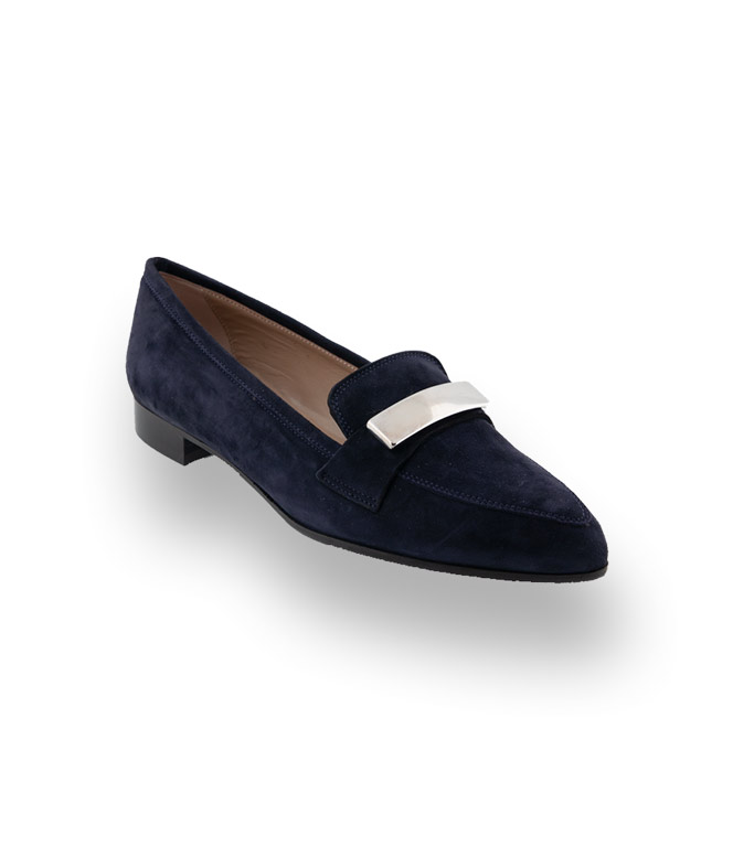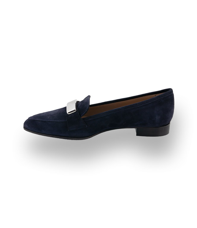 Blaues Veloursleder und weiches Kalblederfutter umschmeicheln den Fuß. Die elegante, silberfarbene Spange unterstreicht den angesagten Style. Eine rutschfeste Gummilaufsohle und der 1,5 cm hohe Schichtabsatz sind Garant für höchsten Komfort. Der perfekte Begleiter für's Büro oder auf Reisen. Tipp - fällt groß aus, bitte eine halbe Nummer kleiner bestellen.