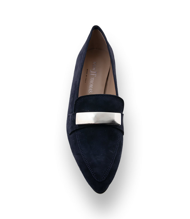 Klassisch und chic präsentiert sich der spitze Loafer im Collegestil.