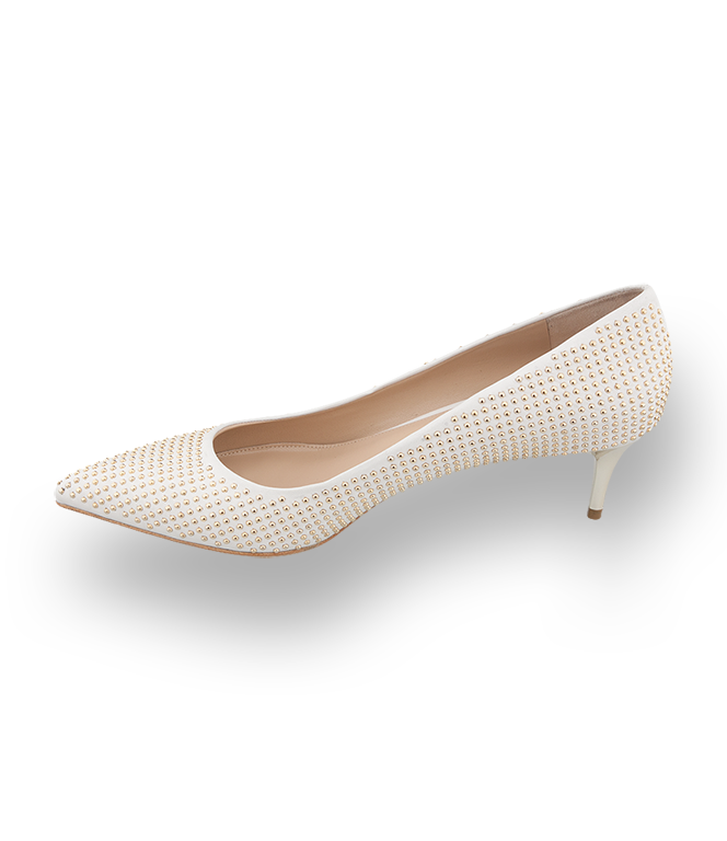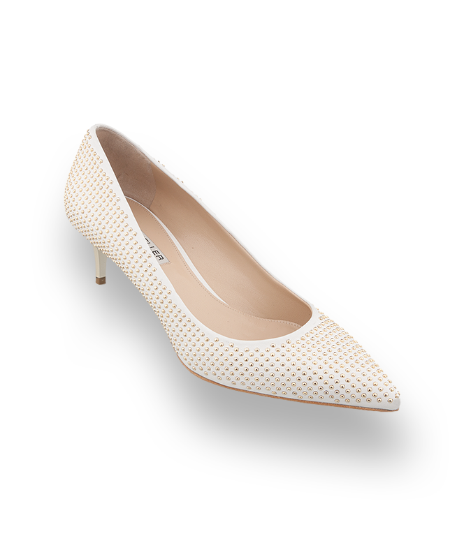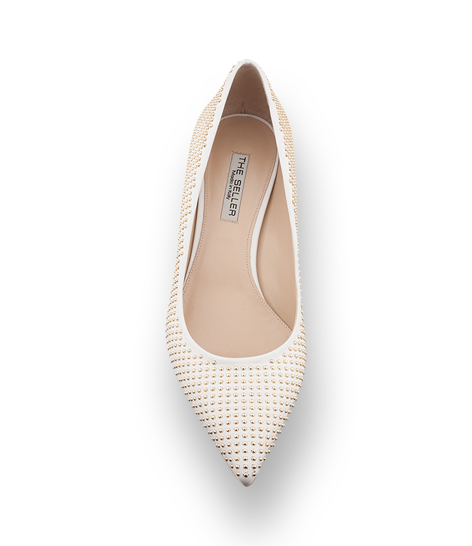 Pumps von The Seller weiss mit goldfarbenen Nieten