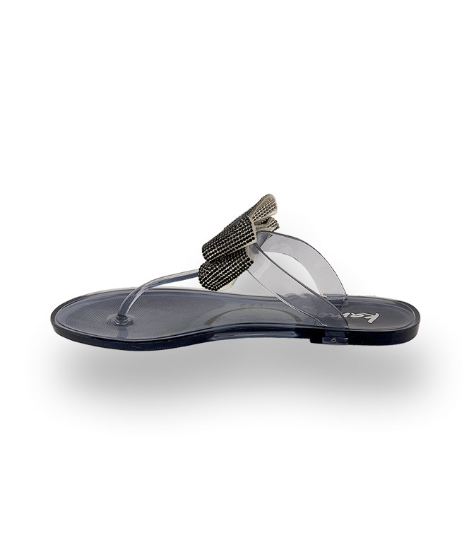 Der Zehengreifer von Kamoa macht ihren Auftritt am Pool oder Strand zu einem Highlight. Die Dianette in dunkelgrau mit einer großen Schleife mit edlen Schmucksteinen in schwarz lässt keine Wünsche offen. Der Flip Flop aus flexiblem Gummi ist absolut Wasserfest und setzt ihre Füße gekonnt in Szene.