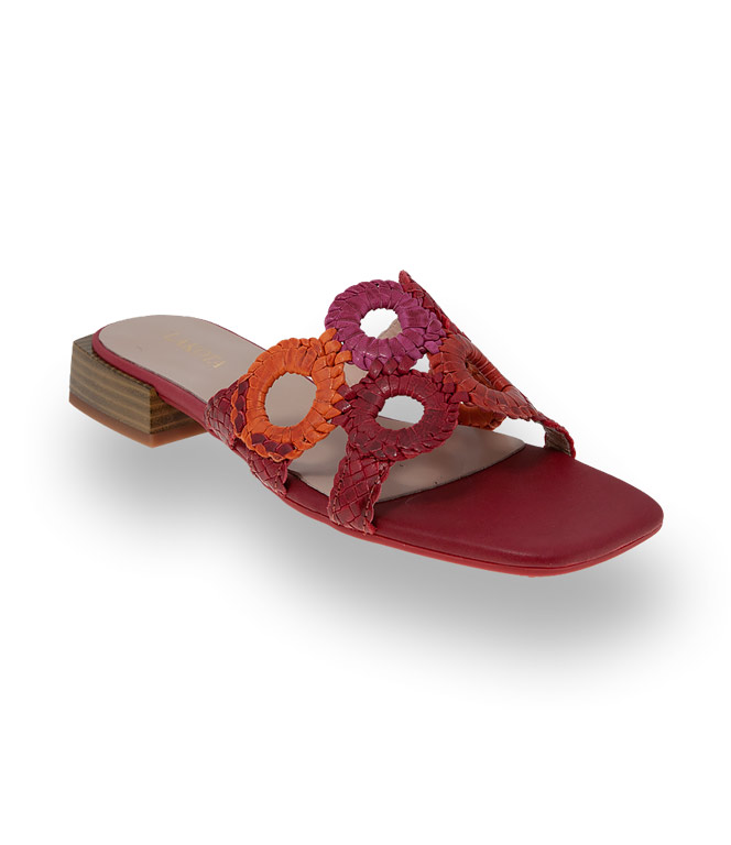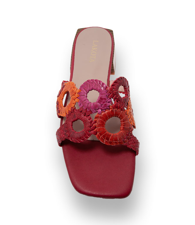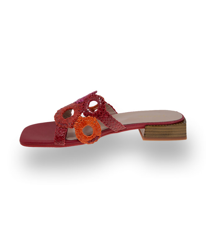 Kess Schuhe Pantolette mit roten, pink und orangefarbenen Ringe