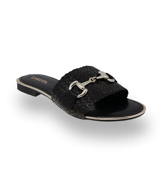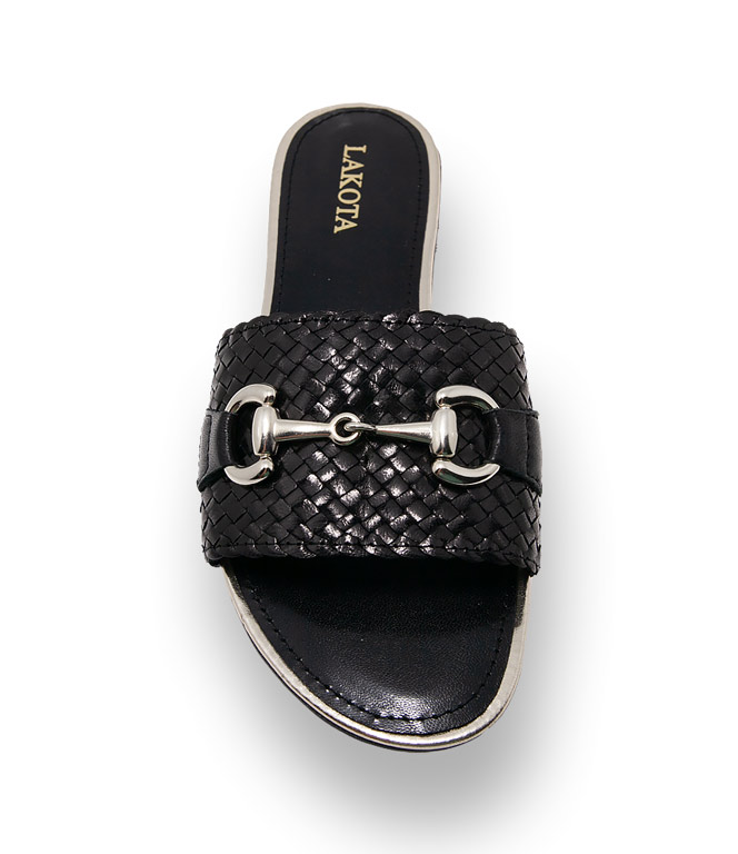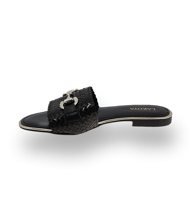 Kess Schuhe Pantolette in schwarz Flechtarbeit mit Schmuckspange