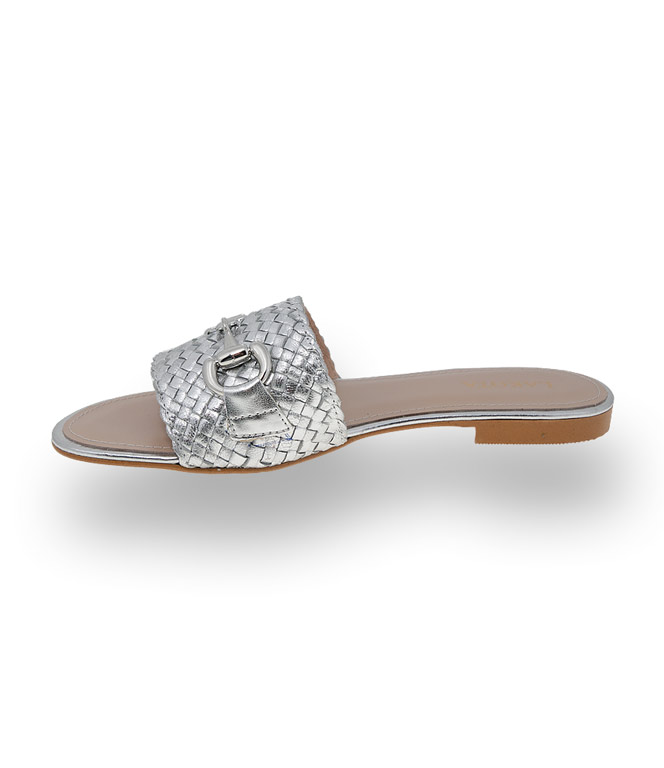 Kess Schuhe Pantolette in silberfarben Flechtarbeit mit Schmuckspange