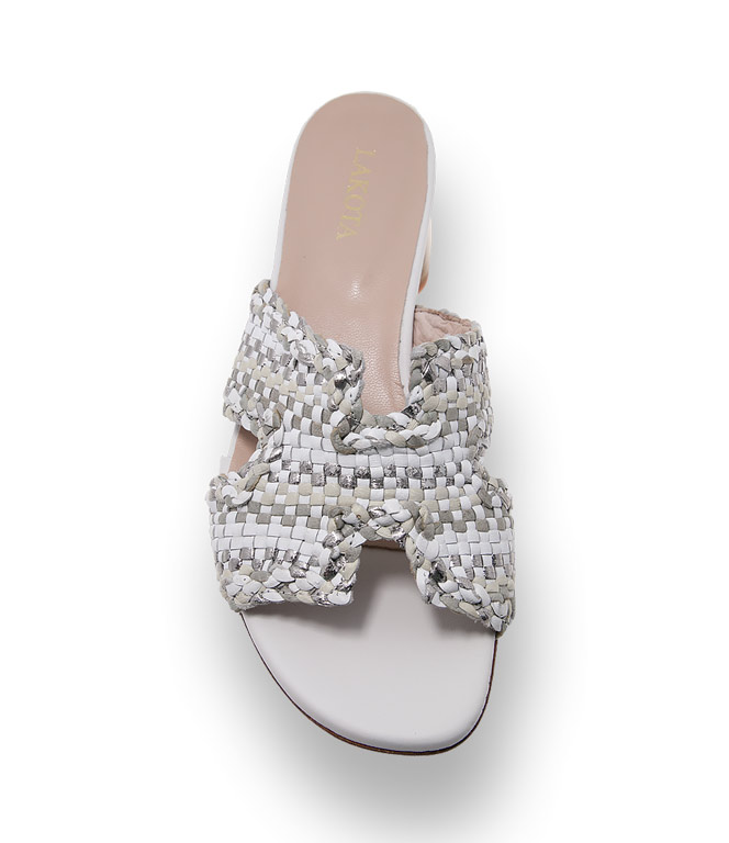 Kess Schuhe Pantolette in weiß silberfarben Flechtarbeit