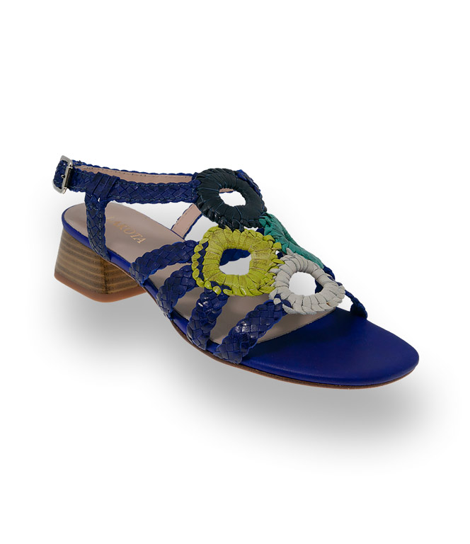 Geflochtene Sandalen von Kess in Häkeloptik faszinieren im Tragekomfort. Perfekte Passform, idealer Halt bieten die Flechtsandaletten und ein 3,5cm hoher Blockabsatz garantiert Bequemlichkeit. Sehnsucht nach optischer Aufheiterung. Lederfutter und Ledersohle in bester Verarbeitung. Ruf nach Freiheit und herrlichen Sommertagen in den mehrfarbigen Sandalen von KESS.