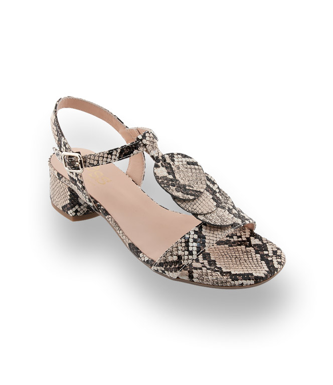 Tolles modisches Detail ist die Riemchenanordung und der Schlangenprint