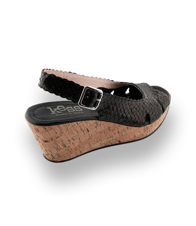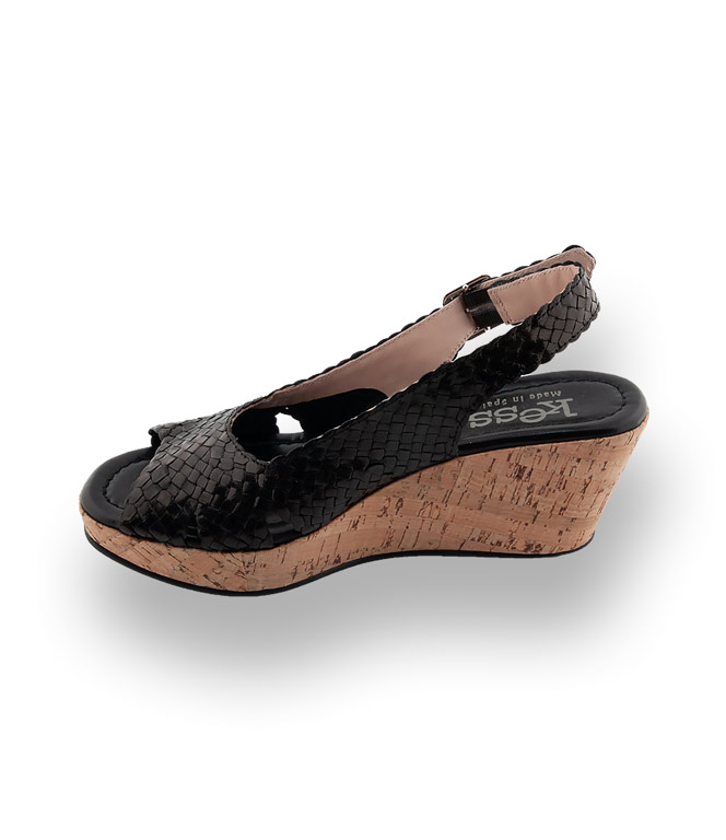 Tolles modisches Detail ist die Flechtarbeit und der Keil in Korkoptik