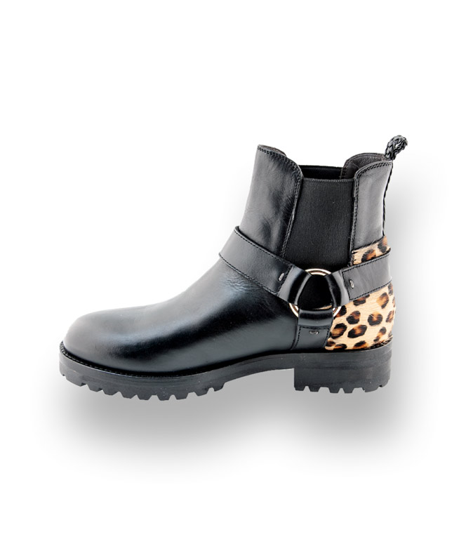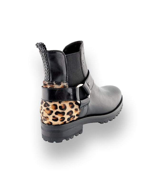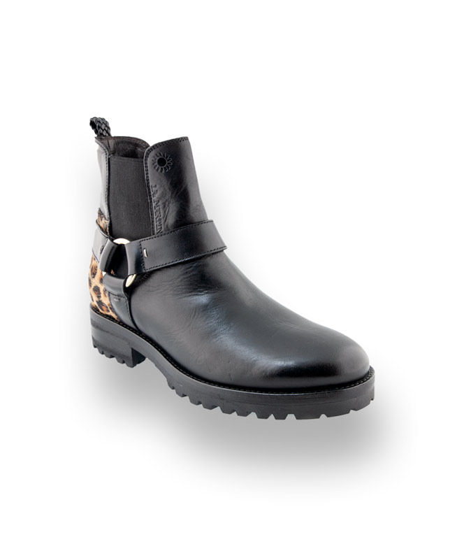 La Martina Bikerboots in schwarz mit Leoprint an der Ferse