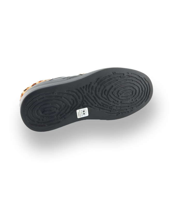 Weiches Kalbsleder wurde im Seitenbereich mit aufwendigen Karosteppungen veredelt. Fell im Leoprint, mit metallischer Einfassung, setzen die Ferse gekonnt in Szene. Goldfarbene Ösen, die Enden der Ripsbänder und die legendären Polospieler perfektionieren den angesagten Look. Die durchgenähte Gummilaufsohle bietet sicheren Halt und Schutz vor Nässe.