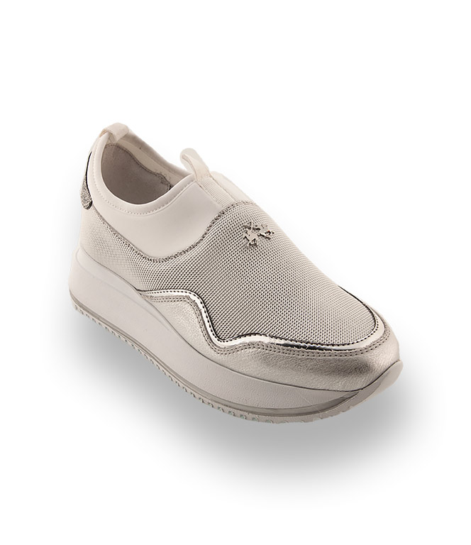 La Martina Damensneaker -Slipon in weiß mit silberfarben