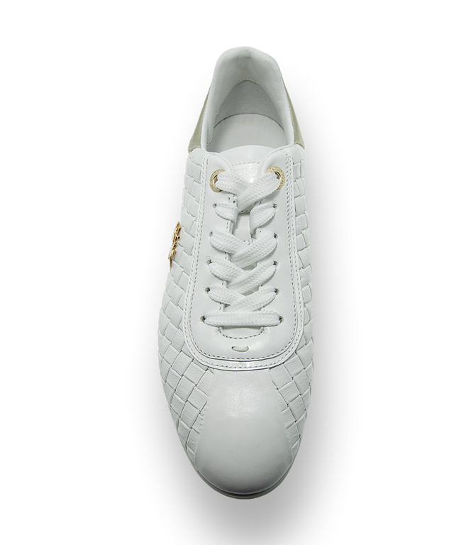 Sportswear und Mode gehören zusammen. Superleicht die neuen Sneaker von La Martina präsentieren sich feminin und reduziert. Luxuriöse Flechtung aus weißem, weichem Kalbsleder mit goldfarbenen Polospielern verziert, vervollständigen ihren Casual-Style. Fashion ist Comfort. Durch hochwertige Materialien und herausnehmbares Lederfußbett deckt der Trendschuh alle Bedürfnisse. Ein idealer Stylingpartner für einen ausgedehnten City-Trip.